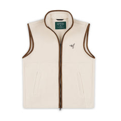 Introducing the Raiments Cream Gilet. Crafted from heavyweight premium fleece for exceptional warmth, it features an authentic premium leather trim, equipped with durable YKK zips and hidden side pockets for secure storage. The adjustable waistline ensures a tailored fit. Finished with embroidered mallard logo.